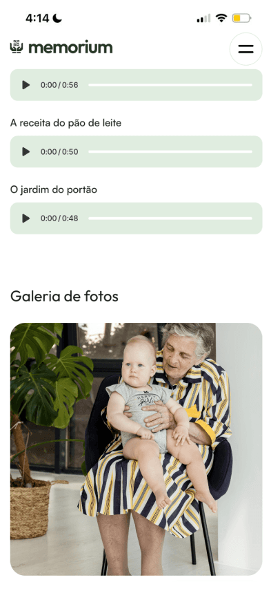 Acesse de qualquer lugar, envie para familiares e mergulhe nas memórias com leveza e significado.